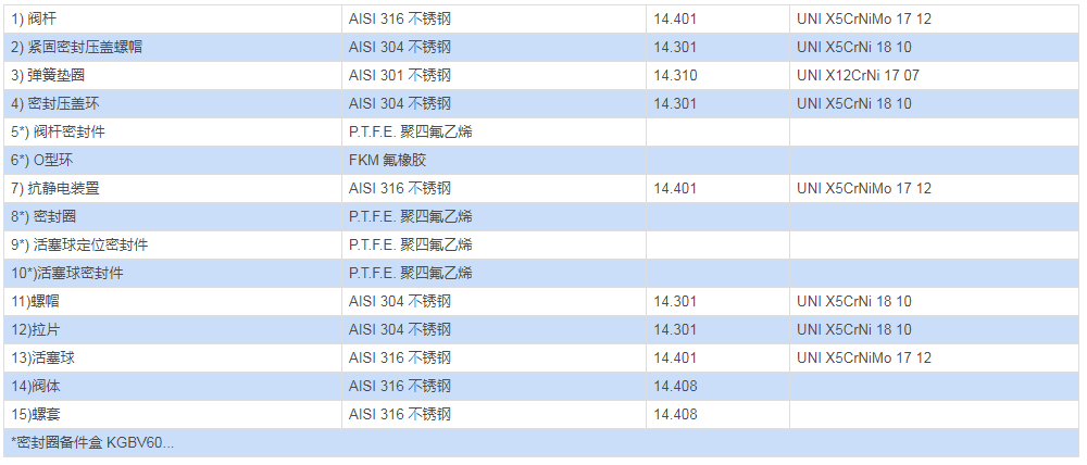 密封材料:RPTFE增強聚四氟乙烯(加玻璃15%);