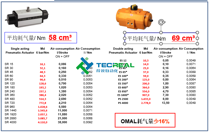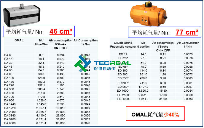 OMAL撥叉式氣動(dòng)執(zhí)行器與埃爾蒂克執(zhí)行器在能耗、重量等方面的對(duì)比