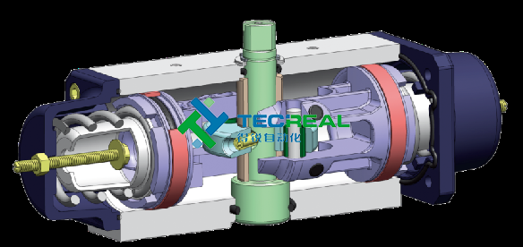 撥叉式氣動執(zhí)行器具有扭矩大、空間小、扭矩曲線更符合閥門的扭矩曲線等特點,但是不很美觀;常用在大扭矩的閥門上。齒輪齒條式氣動執(zhí)行機(jī)構(gòu)有結(jié)構(gòu)簡單,動作平穩(wěn)可靠,并且安全防爆等優(yōu)點,在發(fā)電廠、化工,煉油等對安全要求較高的生產(chǎn)過程中有廣泛的應(yīng)用。