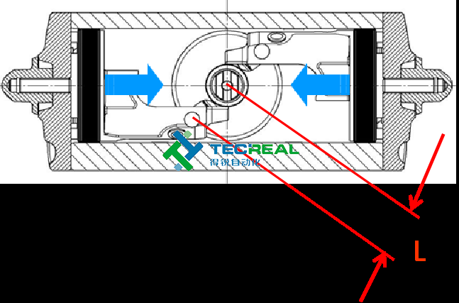 其次,撥叉式氣動執(zhí)行器運作時,輸出力扭能隨角度改變而改變,而且在閥門開啟或關(guān)閉位置,力矩值最大,這正好與閥門的規(guī)律相符。 相比齒輪齒條式執(zhí)行器,撥叉式氣動執(zhí)行器和更能節(jié)省力矩,因為齒輪齒條式執(zhí)行器的力矩是恒定。