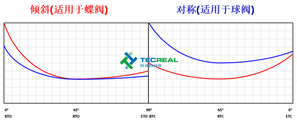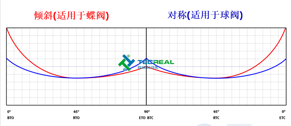 單動執行器兩種類型的扭矩曲線對比