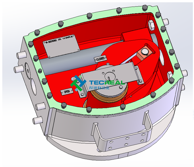 6.缸體內表面及撥叉(紅色部分)具有防腐蝕作用。中央機構的防護等級為IP67,中央機構的上蓋允許在執行器不從閥門處拆卸的情況下打開,進行檢查及維護。