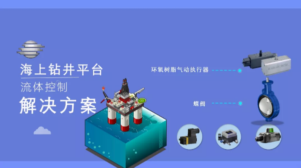 在海上鉆井平臺,海水呈堿性,設(shè)備接觸的空氣具有一定的腐蝕性。采用OMAL的表面噴涂環(huán)氧樹脂/鍍鎳型氣動執(zhí)行器,有較高的耐腐蝕性能和顏色識別功能。同時在海上平臺上,空間小,OMAL氣動閥體積小、質(zhì)量輕的優(yōu)點是該場景的最佳選擇。