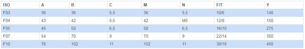 | (**):閥門沒有符合ISO F04的連接口 |