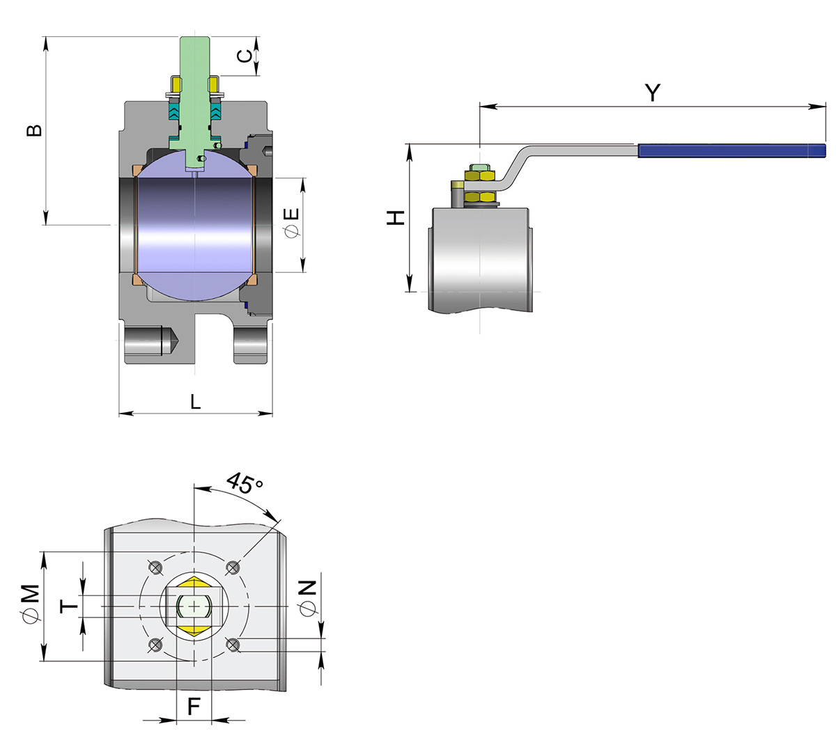 與執行器連接孔符合ISO5211標準