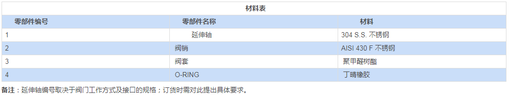 采用材料(用于閥體/活塞球/閥桿)與標準配置不同的參數要求,請與我們的銷售部門聯系